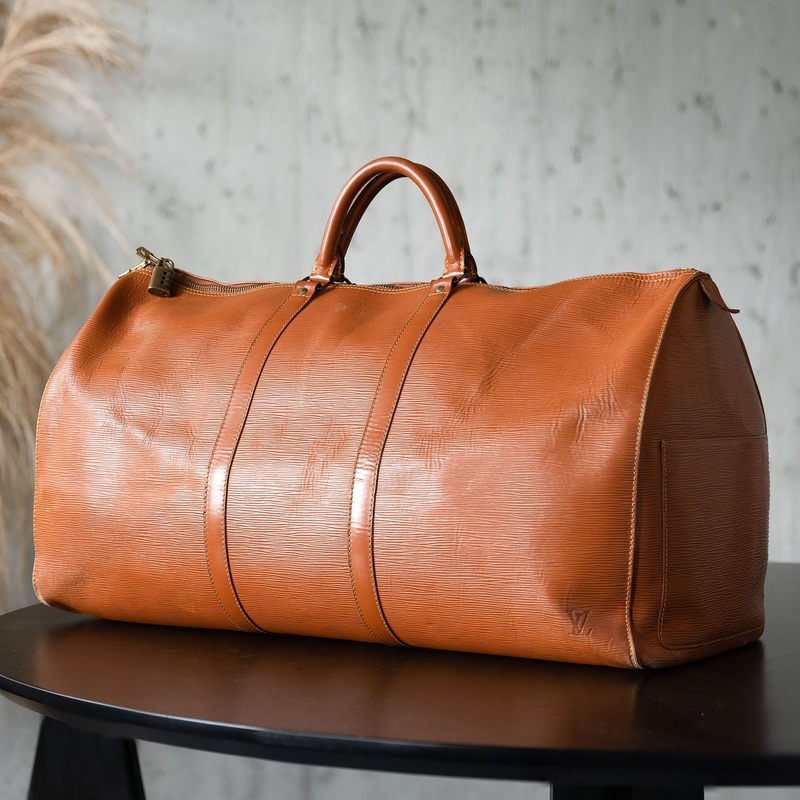 The LV Keepall bag is a design icon in itself with its clean structure it is one of the most desirable items for use on a daily basis, whether on your way to the gym or on a short trip. This version comes in a very rarecipango brownEpi leather which also features the very handy extra pocket sleeve on the side.