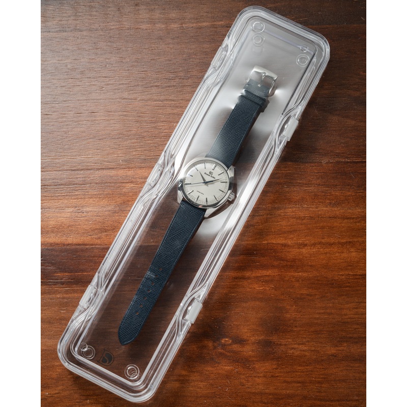 Introducing the perfect blend of form and function with our transparent membrane cases. It holds the watch securely in the same place and ensures safe transportation and storage. The case protects against oxidation and is easily stackable, helping you save space when travelling with multiple timepieces or when you store your watch collection in a safe.