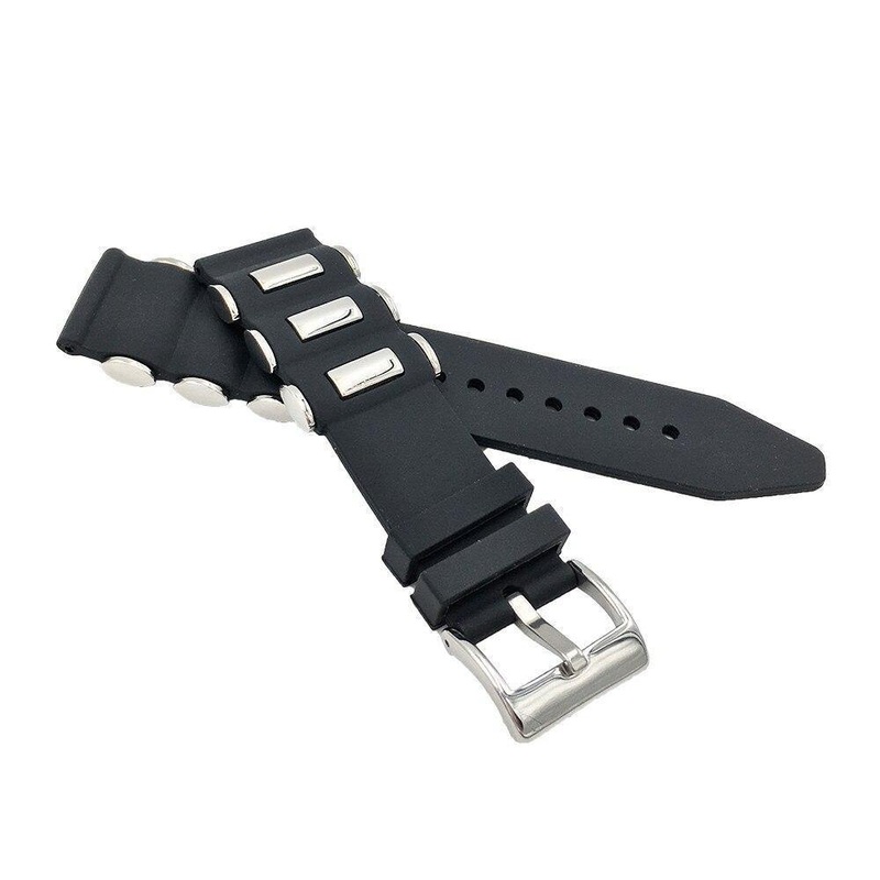 Introducing the Metal-Embedding Black Rubber Watch Band: Elevate Your Timepiece in Style