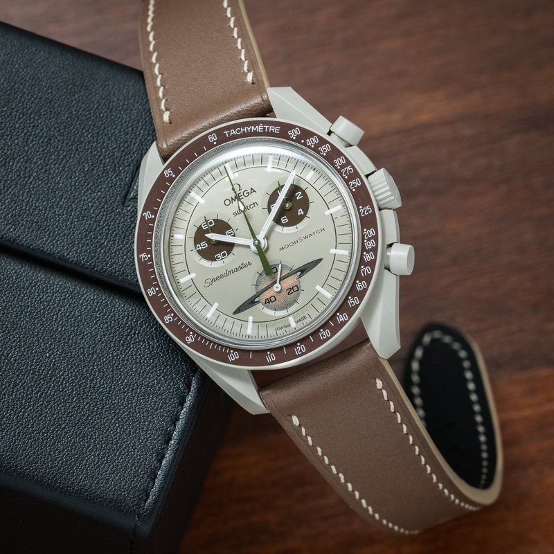 We’ve developed a total of 11 designs, curated to compliment each of the first 11 MoonSwatches, allowing the pairing to be seamless. These straps use the same leather and style from straps you love from Delugs, but with characteristics of two-tone accents in the stitching, edge paint and keepers.
