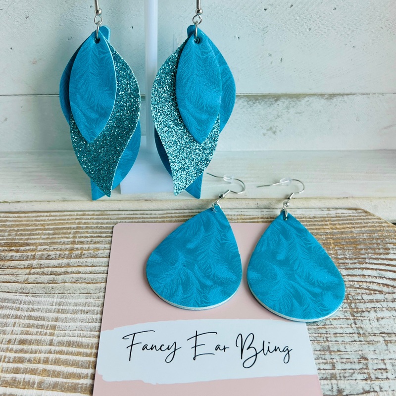 Mystical Feather Faux Leather Teardrop Ear Bling Two Styles Available