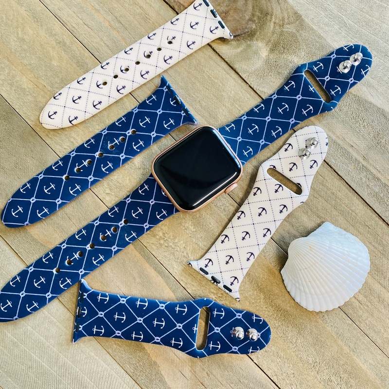Nautical Anchor Print Silicone Band For Apple Watch Two Colors Available Cream
