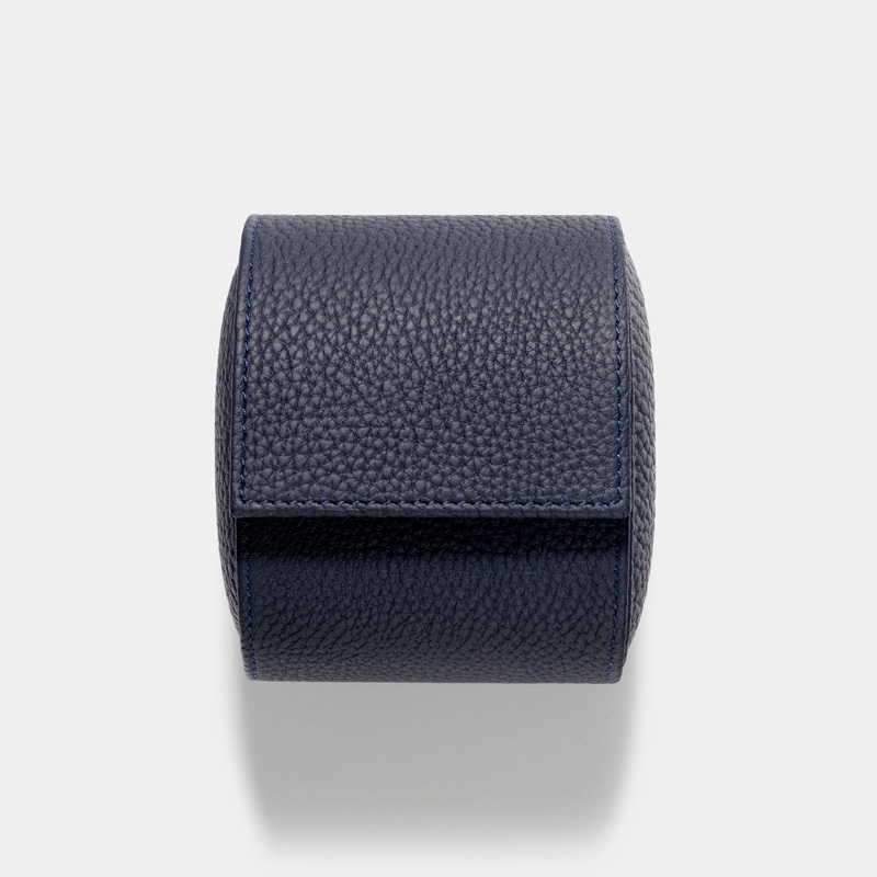 This elegant oval watch box in dark blue leather offers a stylish and secure way to store your favorite timepiece. Its sleek design protects your watch from scratches and dust while adding a touch of sophistication to your dresser or travel essentials. Perfect for watch enthusiasts who value both function and refined aesthetics.