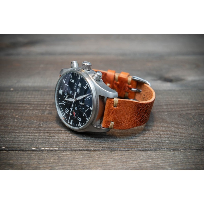Pilot model watch band. Aviator military style Badalassi Carlo (Italy) Leather Watch Band. Tawny colour.