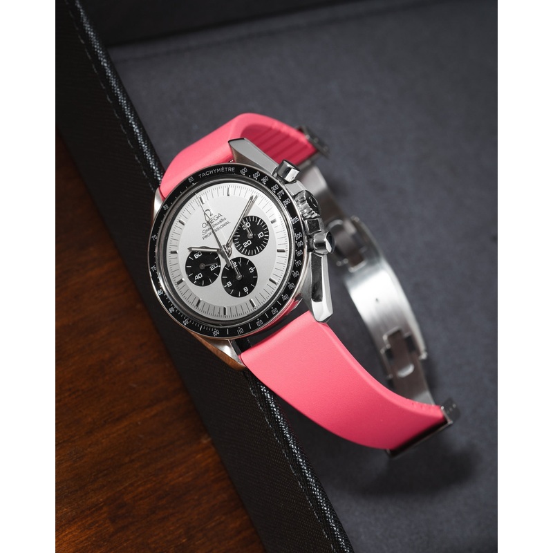 Introducing another new peak in comfort and style: our FKM Rubber Cut-To-Size (“CTS”) rubber watch strap. Customisable to fit your wrist perfectly and secured with a sleek leaf-spring deployant clasp, it is also available in a range of colours to suit your personal style. This strap is not only comfortable and durable, it is also truly waterproof and easy to maintain. Whether you’re hitting the gym, or dressing up for a night out, this strap has you covered.