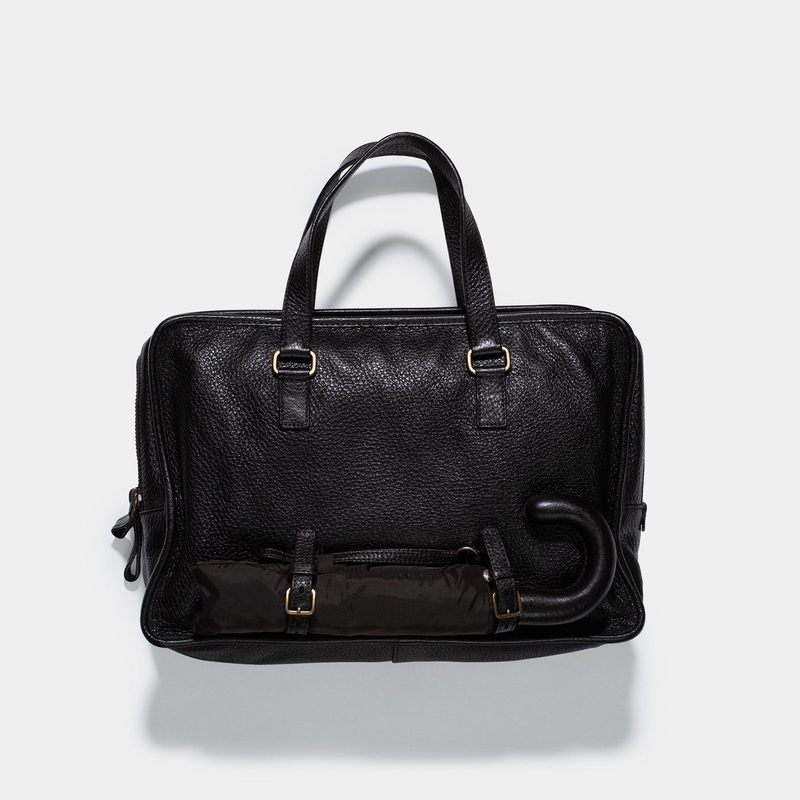 Prada is well known for its outstanding leather leather quality. The Cervo leather has an incredible supple and fine appearance. This perfect companion for your daily commute as well as the classic business sleep over is not only executed in this high class leather but does also carry a handy umbrella. Space for your 15 inch laptop and enough room to store all your bits and tings in the two independent compartments which are both full leather lined.