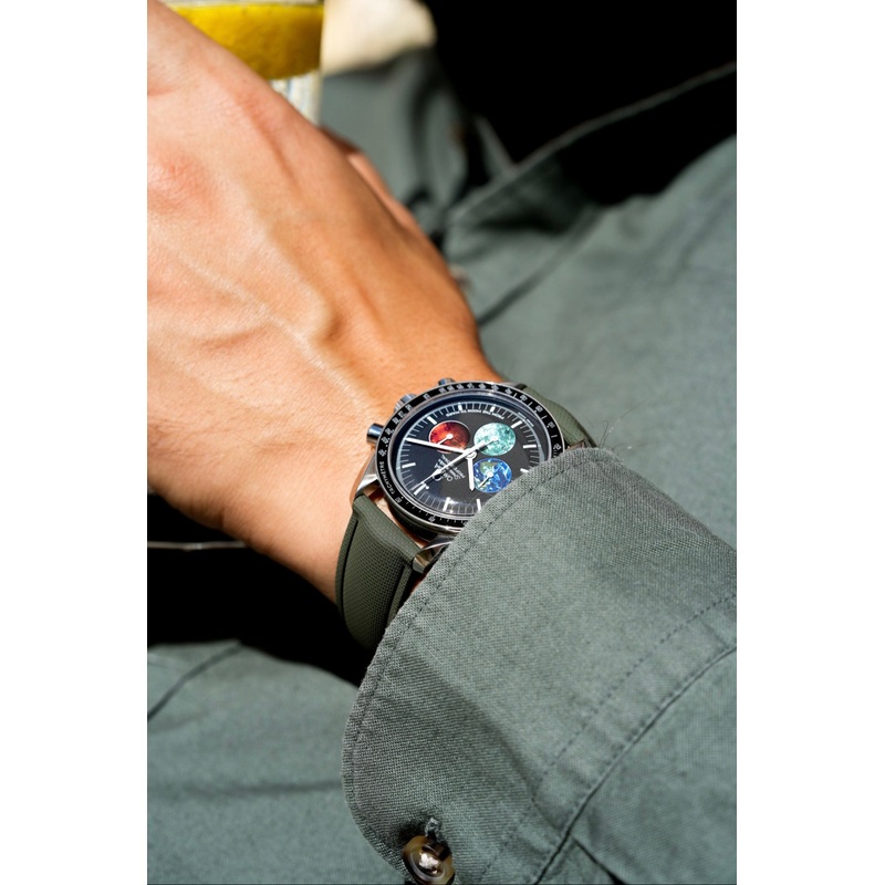Classic sailcloth style, engineered for modern Speedmasters. This strap offers the textured look of sailcloth with the comfort, flexibility and water resistance of high-grade FKM rubber. Its built for everyday wear, from the office to the outdoors.