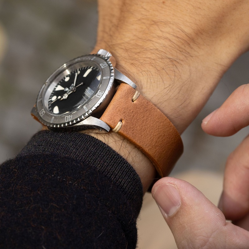 Many steps are necessary to create genuine pieces one vintage style watch strap can take up to an hour to finish. This passion for detail is the main aspect that separates JPM straps from those offered by other producers.