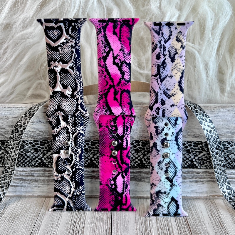 Snakeskin Print Silicone Band For Apple Watch Multiple Colors Available Pink