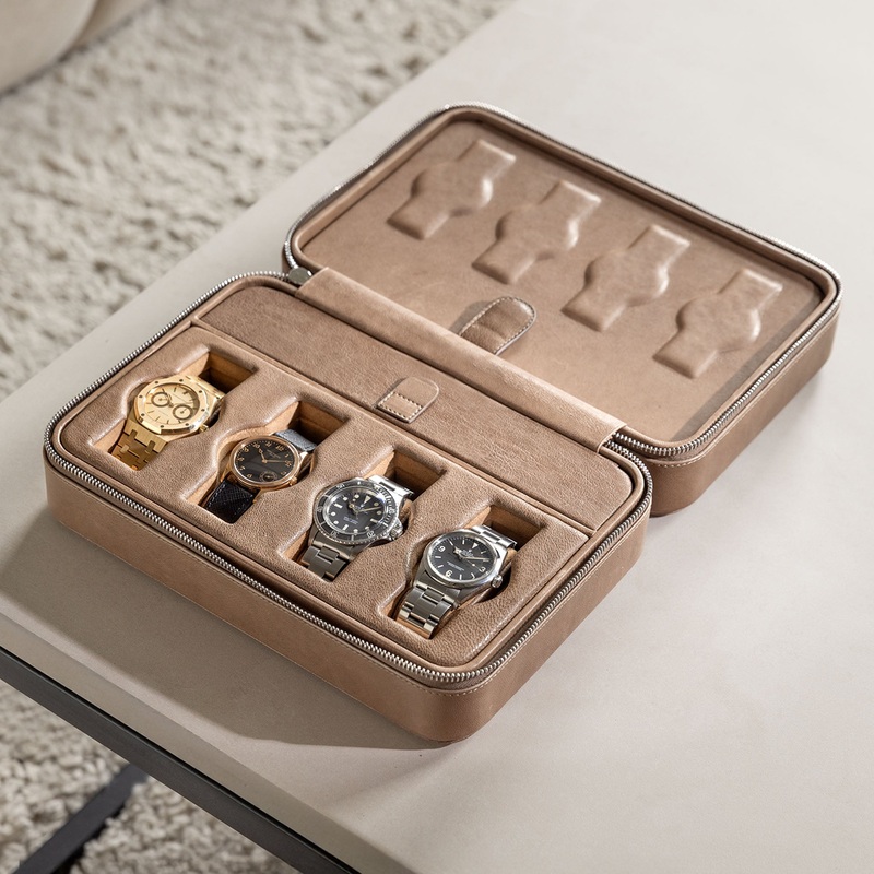 Transport and display your watches in style with the Soft Brown Luxury Leather Watch Box from JPM. Made with high-quality leather, this box exudes luxury and offers ultimate protection for your timepieces. Keep your watches safe and organized while adding a touch of elegance to your space.