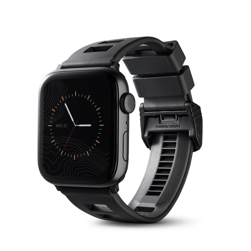 Click into the future of watch bands with the KORE Squared Smartwatch band. Featuring the same micro-adjustable track system as our iconic belts, the KORE Essentials smartwatch bands allow you to conveniently adjust the tightness of your watch band one click at a time, giving you the most precise-fitting smartwatch band youll ever wear. Simply insert your watch band through the stainless steel buckle, and pull to tighten. To loosen, lift the release tab on the buckle and adjust your arm to relieve tension in the watch. Constructed with FKM rubber, the KORE Essentials smartwatch band is designed to withstand any environment and is compatible with most smartwatches.