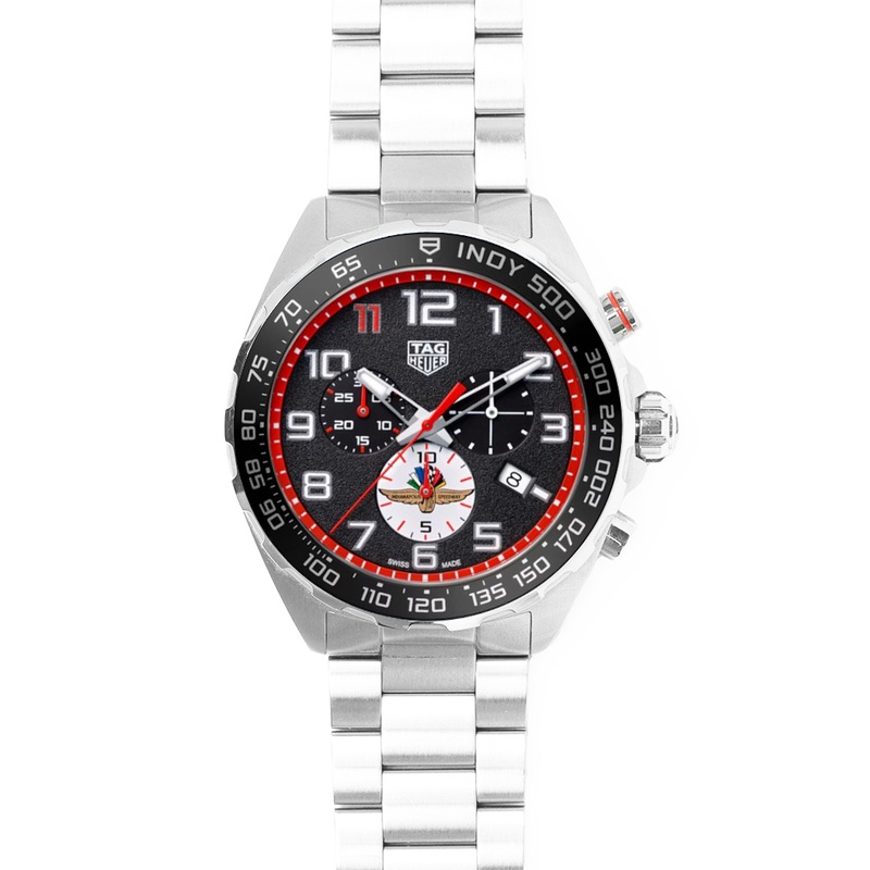 The TAG Heuer Formula 1 CAZ101AW.BA0842 is a bold and high-performance chronograph designed for speed and precision. Featuring a sleek black dial with contrasting white subdials and red accents, this timepiece embodies the spirit of motorsports with a dynamic and modern look. The 43mm stainless steel case is complemented by a black titanium carbide-coated tachymeter bezel, enhancing both durability and sporty appeal.