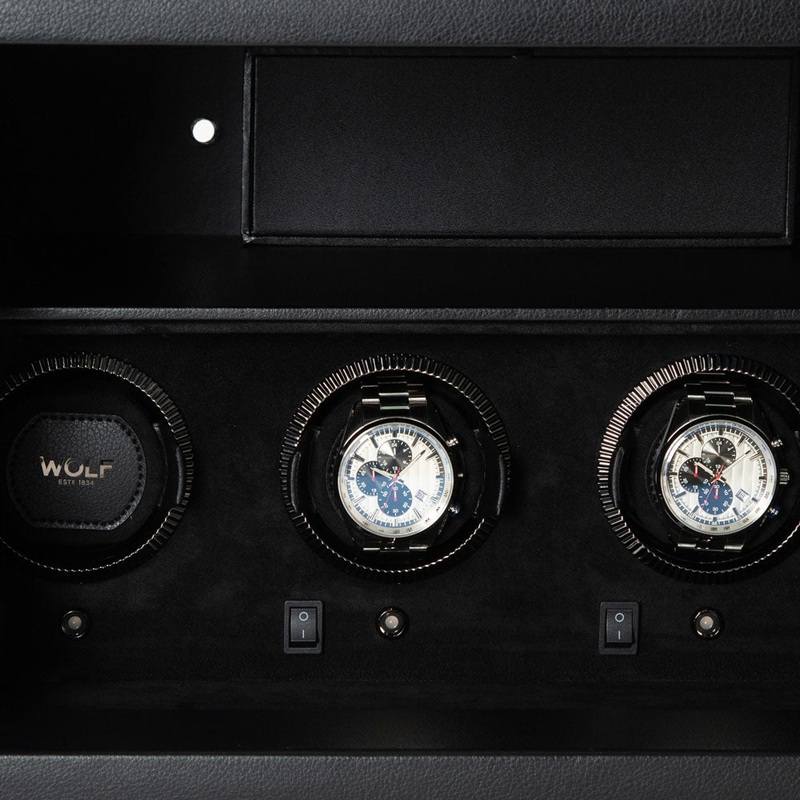 - Storage: 4 winding modulesplus storage area including Vault tray with removable 3-piece watch tray