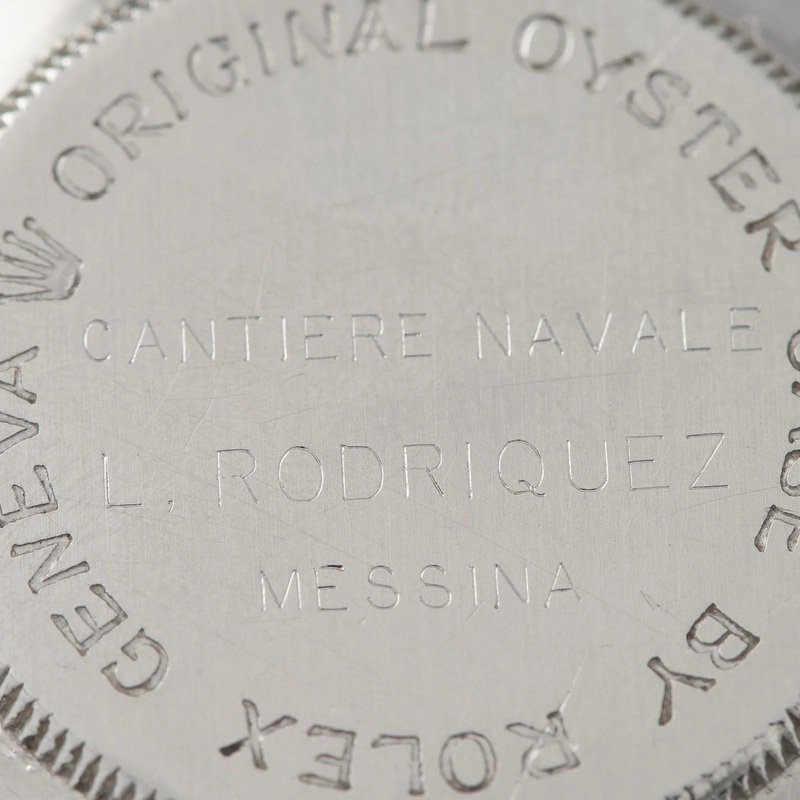 This is a very cool original owner Tudor Submariner with a VERY cool story ! You can read it here! The watch was originally bought by Carlo Rodriguez, who had the case back engraved with the name of his famous Italian ship building business L Rodgriguez Cantieri Navale Messina. The engraving is still in great condition and is a super cool feature of this watch and the key to its secret!