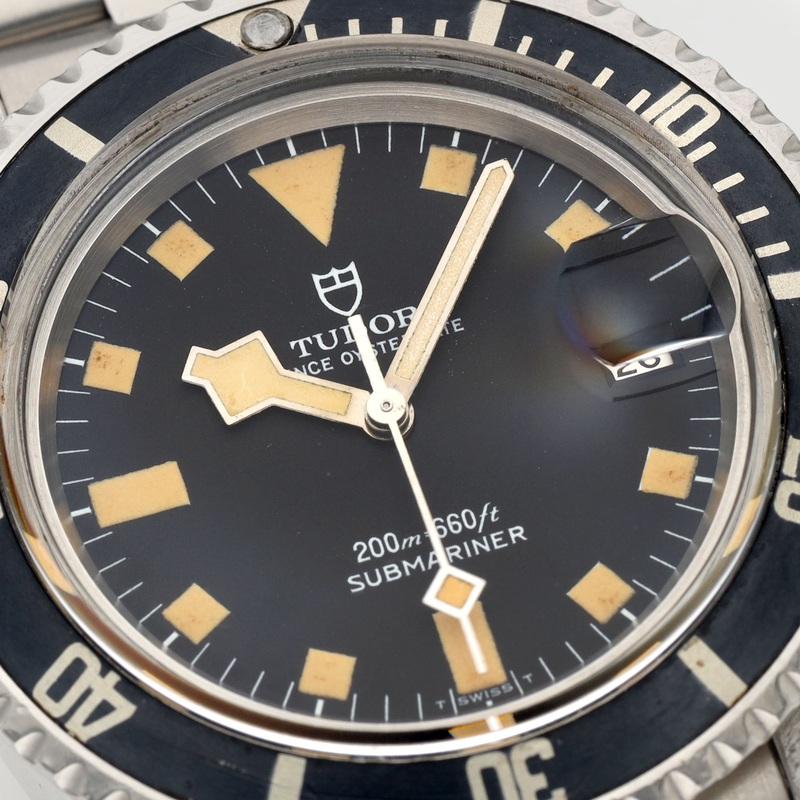 The Tudor snowflake Submariner is now as iconic as the Mercedes hands watches and is a firm favourite with vintage sports watch fans. This example dares from the 1970s and has a black dial that has taken on a really deep and beautiful patina on the hour markers and hands.