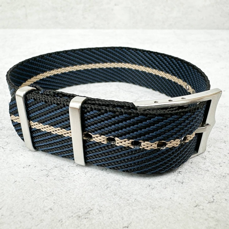 Be the first to review “Twill Woven Nylon Single Pass Watch Strap | DARK BLUE / BEIGE | 20 22 mm”