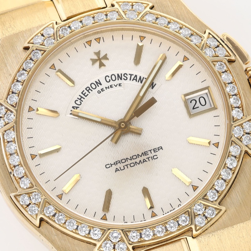The silvery cream dial has a guilloche finish and applied arrow hour markers. The bezel, the design of which echoes the Maltese cross, is factory set with brilliant cut diamonds that gives the sporty watch an entirely different vibe and feel another stunner for summer!