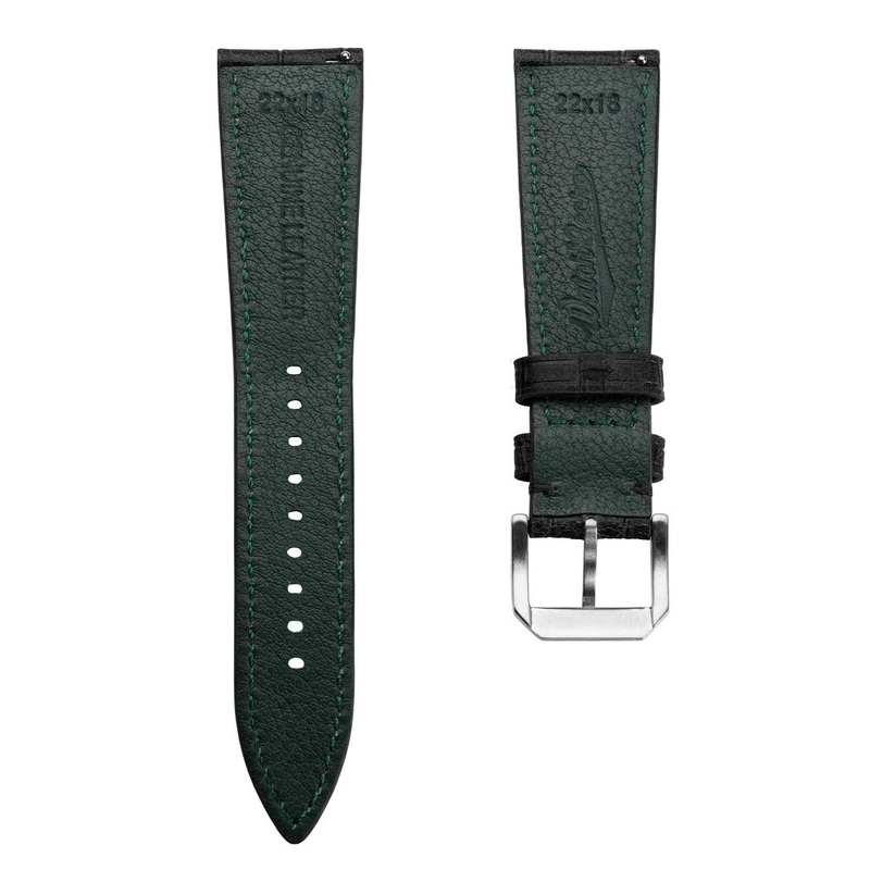 Designed to mimic the luxurious texture of alligator leather, this strap adds a sophisticated touch to any timepiece while maintaining the softness and flexibility of premium calf leather.