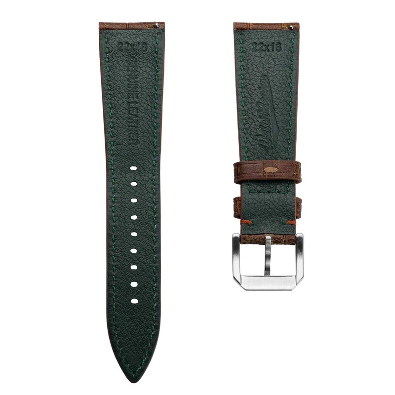 Introducing the Vintage Carolina Gator Print Genuine Leather Watch Strap, handmade from genuine calf leather for those who appreciate the balance between timeless elegance and modern convenience.
