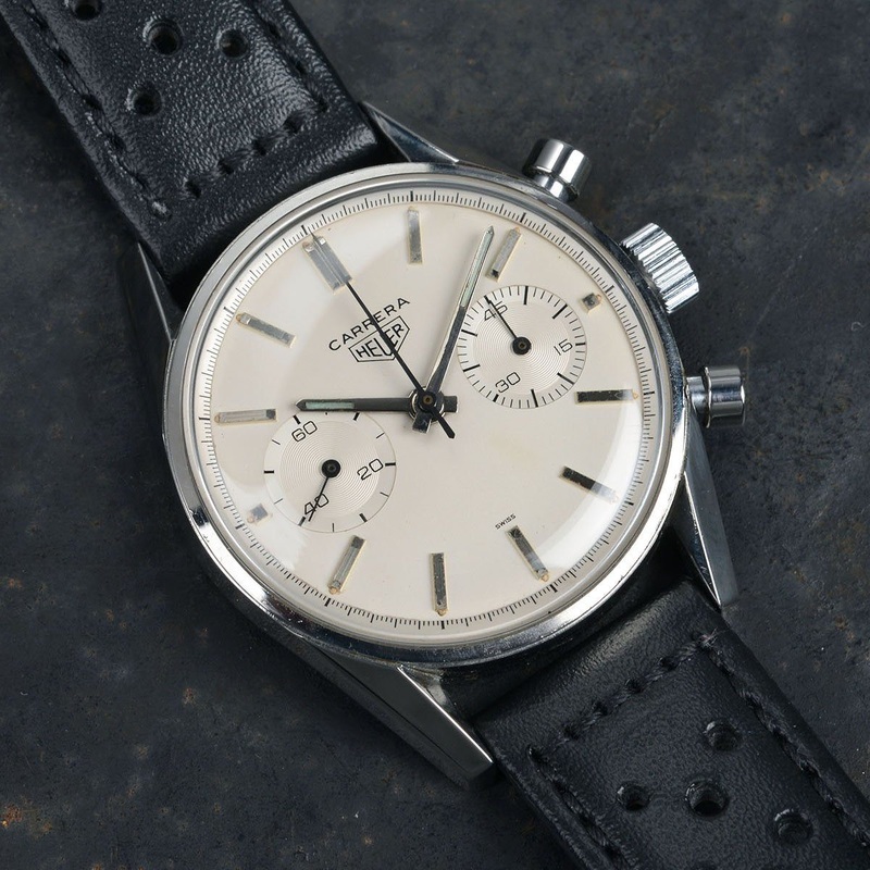 We are happy to offer you another beautiful vintage classic chronograph. The legendary Heuer Carrera 3647S with the much sought after first series cremedial. Much lesser numbers then the silver versions.