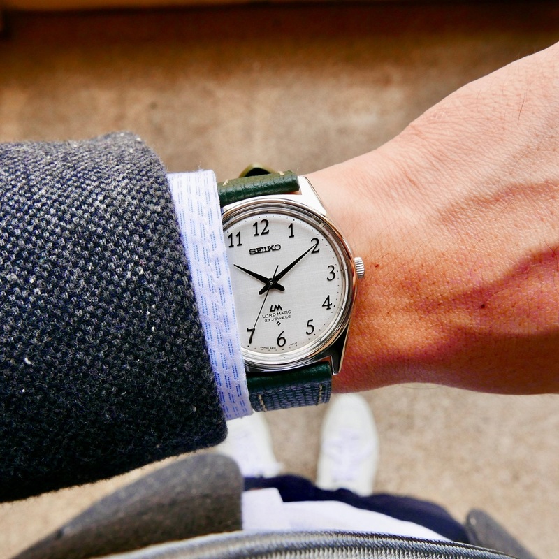 The Lord Matic line was issued in many different variations of dial and case configurations. The specific Lord Matic 5601-9001T that we’re offering comes with a very rare linen dial, which is reminiscent of theRolex Datejust from the same erawith a similar dial. The watch is also fitted with a multi-dimensional polished lug that has been left in its original condition since leaving the factory. The mirror-finished hands have a black line in the middle resembles the sword hand fitted to Grand Seikos, it is alsoa classic signature of Seiko from the 70s. Overall, the condition of the watch is amazing!