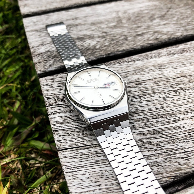 This Lord Quartz 7853-7000 fitted with a lined dial rich in texture and Kenji day wheel that easily let everyone knows its a JDM market watch. Most importantly, with over40 years of history, thiscaliber still runs at +/- 10 seconds per month! Pairing with the original bracelet, this Lord Quartz is such a rare find.