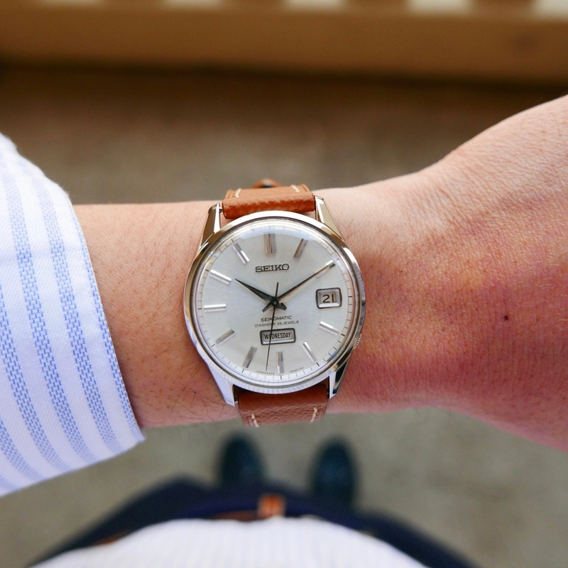 Eventually, the 62 series movement worked its way up to become one of the finest movements ever manufactured by Seiko, housing the 62 Grand Seiko.We were drawn to this particular Seikomatic 6206-8040 for several reasons. The curved case lugs and sword hand resemble the design of the 6245 Grand Seiko. The design is not as aggressive as the 56 King Seiko, but it’s clean and unique within the Seiko family.