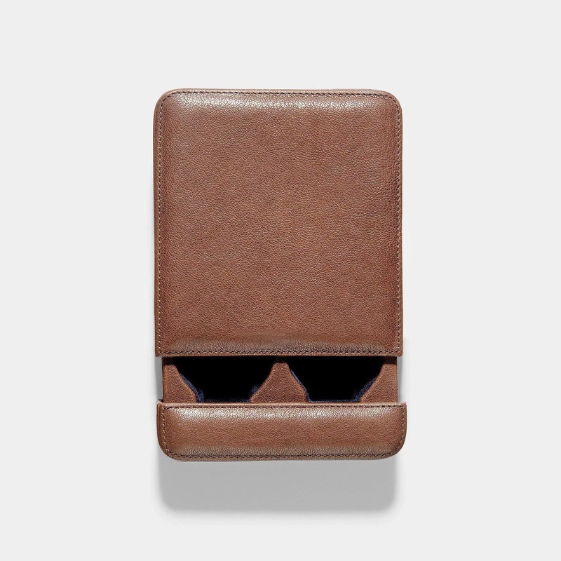 Whether at home or abroad, our two watch slider box is an ideal companion to store up to two timepieces in a practical, yet presentable manner. Handmade in Tuscany from finest finest leather in a WashedBrowntone, the box provides a luxurious and safe space for a duo of your choice.