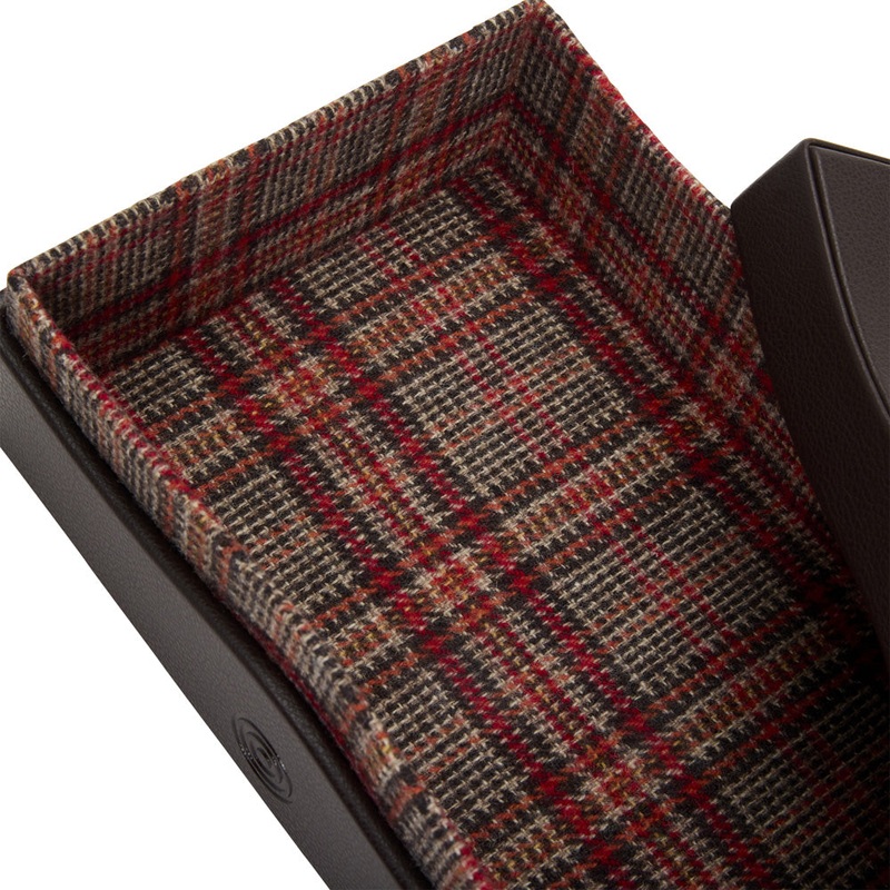 The WM Brown x WOLF collaboration is here! Known for his impeccable taste in fashion and love of watches, founder and editor of WM Brown Matt Hranek has partnered with WOLF to craft a collection of products made for the modern man. The WM Brown Accessory Box hand crafted with a brown pebble vegan leather exterior and Negroni tweed lining features a unique stylish wave design lid, to make a statement on your sideboard or chest of drawers. Perfect for all your valuables.