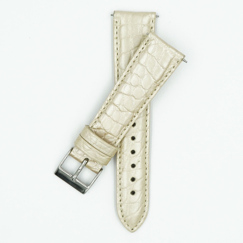 This fine watch strap is Hand made in Italy by Don Taylor. This strap features a matte finish Genuine Crocodile and is Made to fit perfectly on Michele watches, Cartier Swiss watches, Concord, David Yurman, Philip Stein Teslar, and all other watch brands with 16mm to 22mm lug size. Comes equipped with quick release feature for easy installation which makes it easy to put on/take off without tools.. Medium padded construction (3-4mm). Total length is approximatley 7 inches including the buckle.