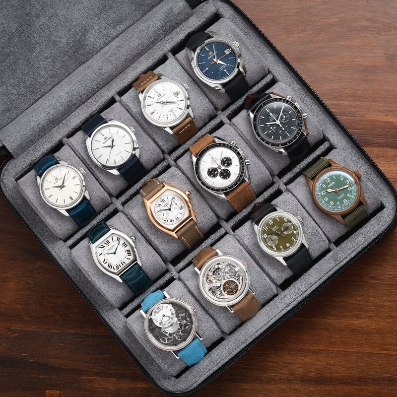 The Zip Box is sized to fit watches with case size up to 54mm (including the crown), so you can fit anything from your Rolex Datejust to Panerai inside this case. And did I already mention that the Zip Box pillows are compressible and designed to fit smaller wrists, so there’s no need to worry about it stretching your strap or bracelet?