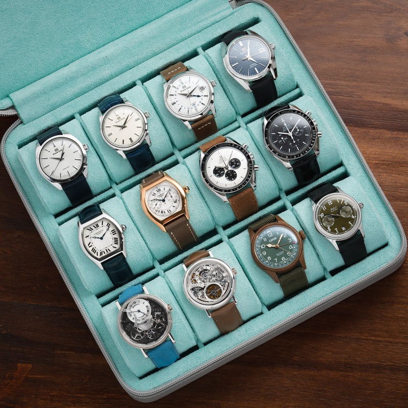 The Zip Box is sized to fit watches with case size up to 54mm (including the crown), so you can fit anything from your Rolex Datejust to Panerai inside this case. And did I already mention that the Zip Box pillows are compressible and designed to fit smaller wrists, so there’s no need to worry about it stretching your strap or bracelet!